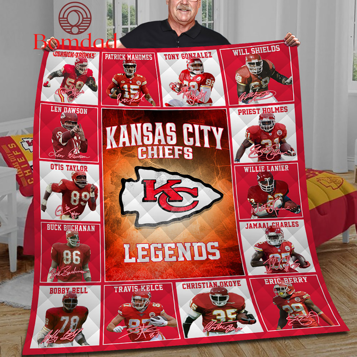 Get cozy with ultimate Chiefs comfort in our Kansas City Chiefs Blanket. With beautiful Chiefs colors and bold prints, your bed will look even more beautiful. With soft material and multi-layer lining, it is extremely warm, suitable for cold weather. You can put them on the bed, sofa, or bring them to cheer at the game to create an atmosphere that any Chiefs Kingdom member would love.