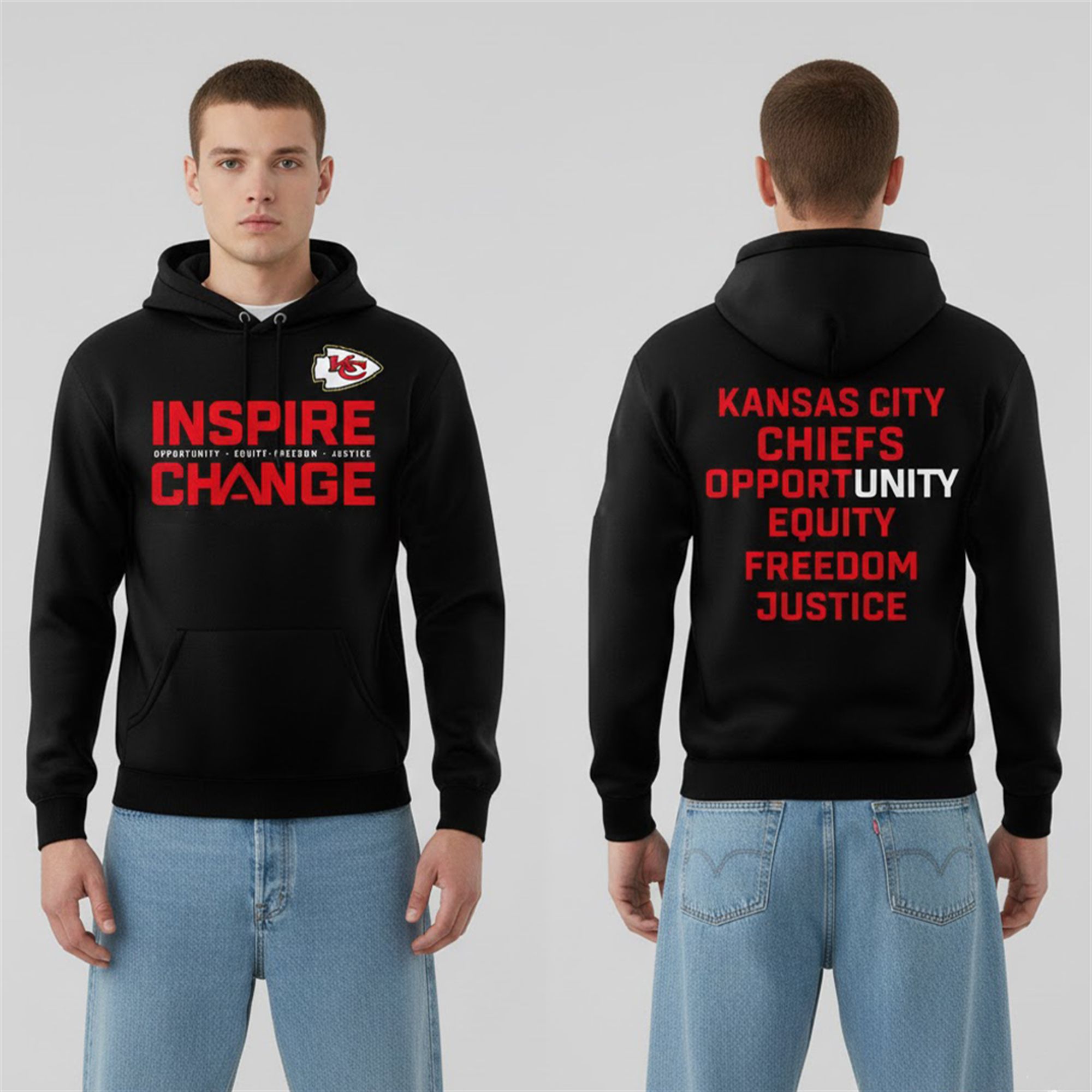 Be part of the Chiefs gang and part of the victorious vibe by donning this Kansas City Chiefs Inspire Change Freedom Justice Hoodie. Not only will you be enjoying the warmth and comfort it provides, but you’ll also be supporting your favorite team in style. Remember, wearing this hoodie means more than just showing team spirit; it’s all about being in the crew, a family — the Chiefs tribe.