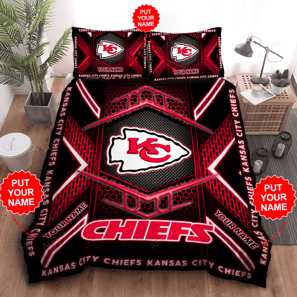 Kansas City Chiefs Red Hexagon Grid Custom Bedding Set