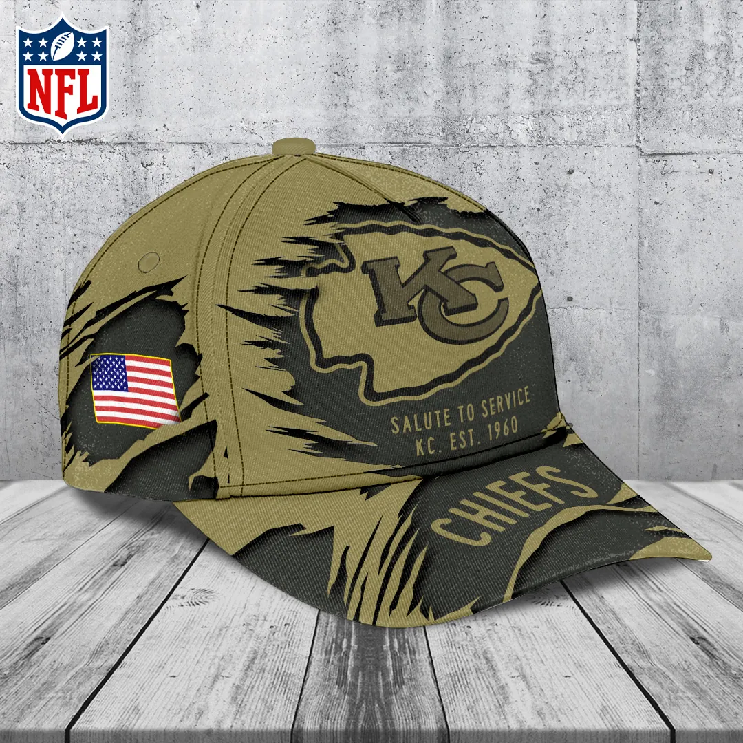 Show your Chiefs’ love all around with our Kansas City Chiefs Salute to Service Baseball Cap. It’s not just a hat, but a big shout-out to solid fandom. This uniquely designed cap offers amazing comfort and look, and most of all, team spirit!
