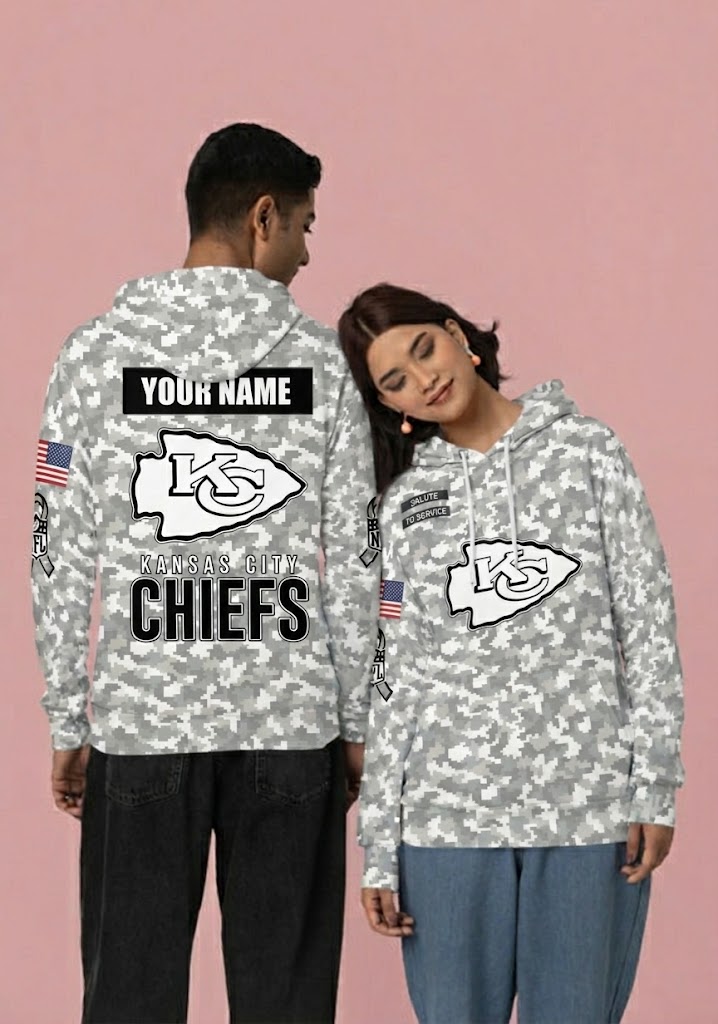 Personalized Kansas City Chiefs Arctic Camo Salute to Service Club Hoodie